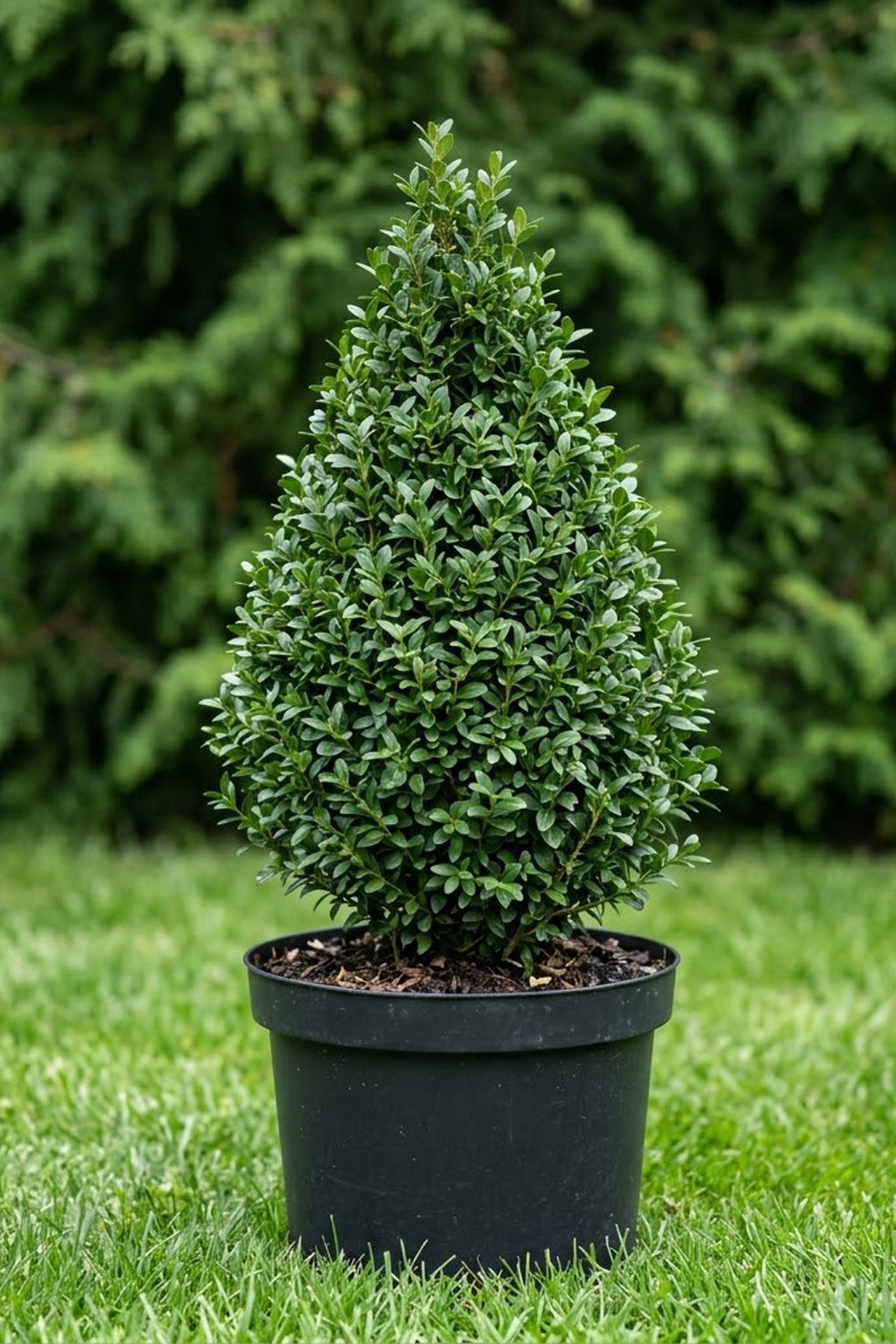 - Вечнозеленый, медленно растущий, компактный кустарник высотой до 1,5м прирастает около 5 см в год, идеально формируется регулярной обрезкой, ценный сорт. Один из самых удачных сортов для формирования конуса с минимальными усилиями. Молодой прирост от природы даёт компактный конически куст.