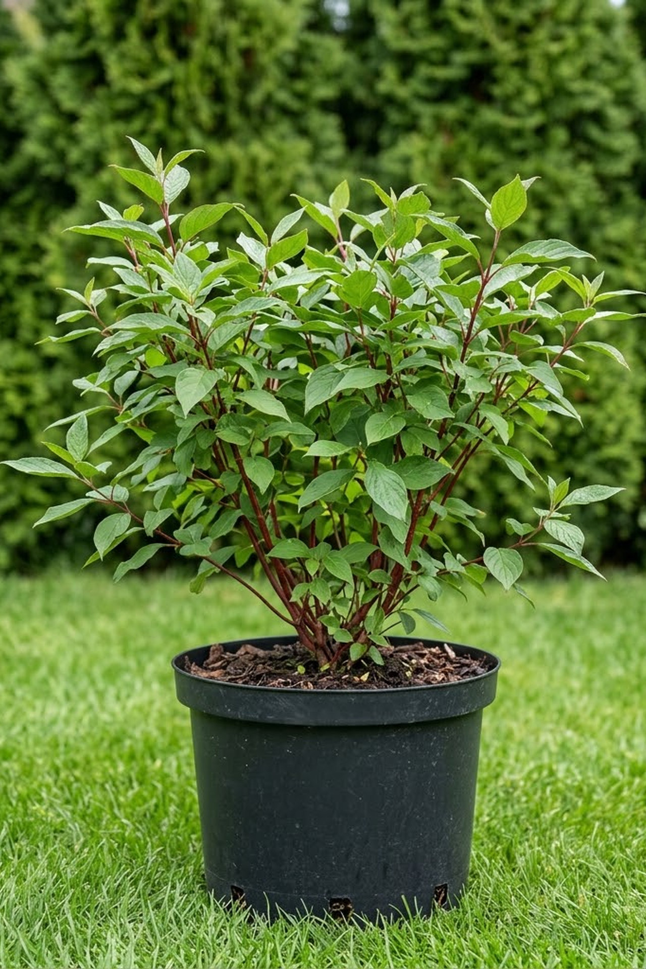 - прямостоячий кустарник с красными побегами