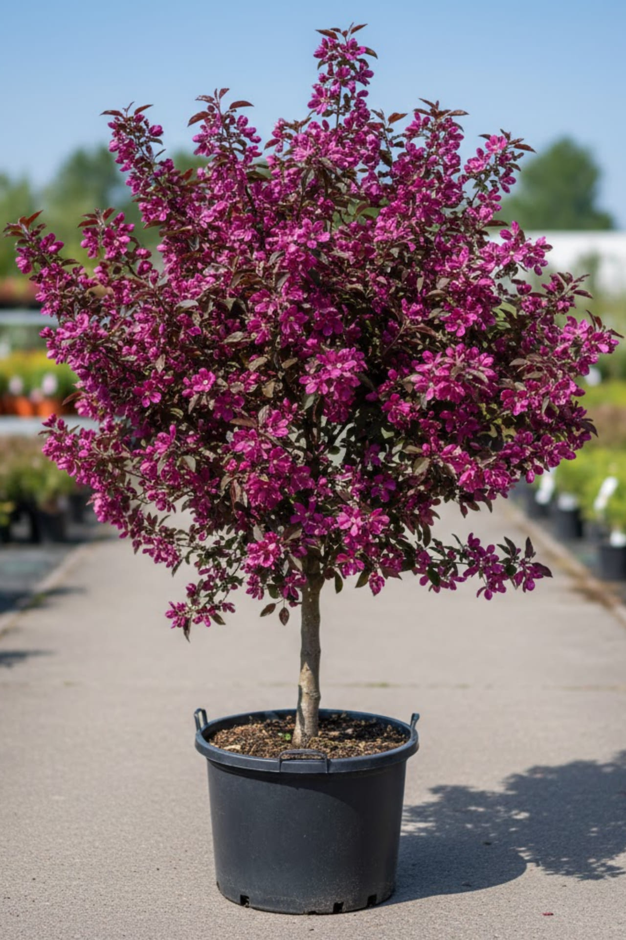 - яблоня обильно цветет: крупные темно-карминные или рубиново-красные бутоны становятся рубиново-красными или малиново-красными цветами с приятным ароматом. Плоды созревают к середине сентября