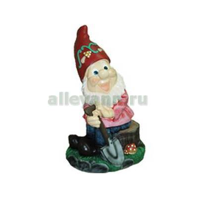 Фигура садовая ГНОМ С ЛОПАТКОЙ НА ПНЕ в Уфе