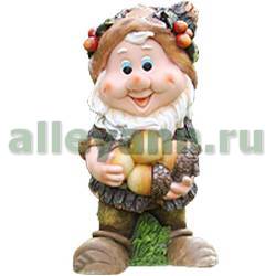 Фигура садовая ГНОМИК С ЯГОДАМИ НА ШЛЯПЕ И ОРЕХАМИ в Уфе