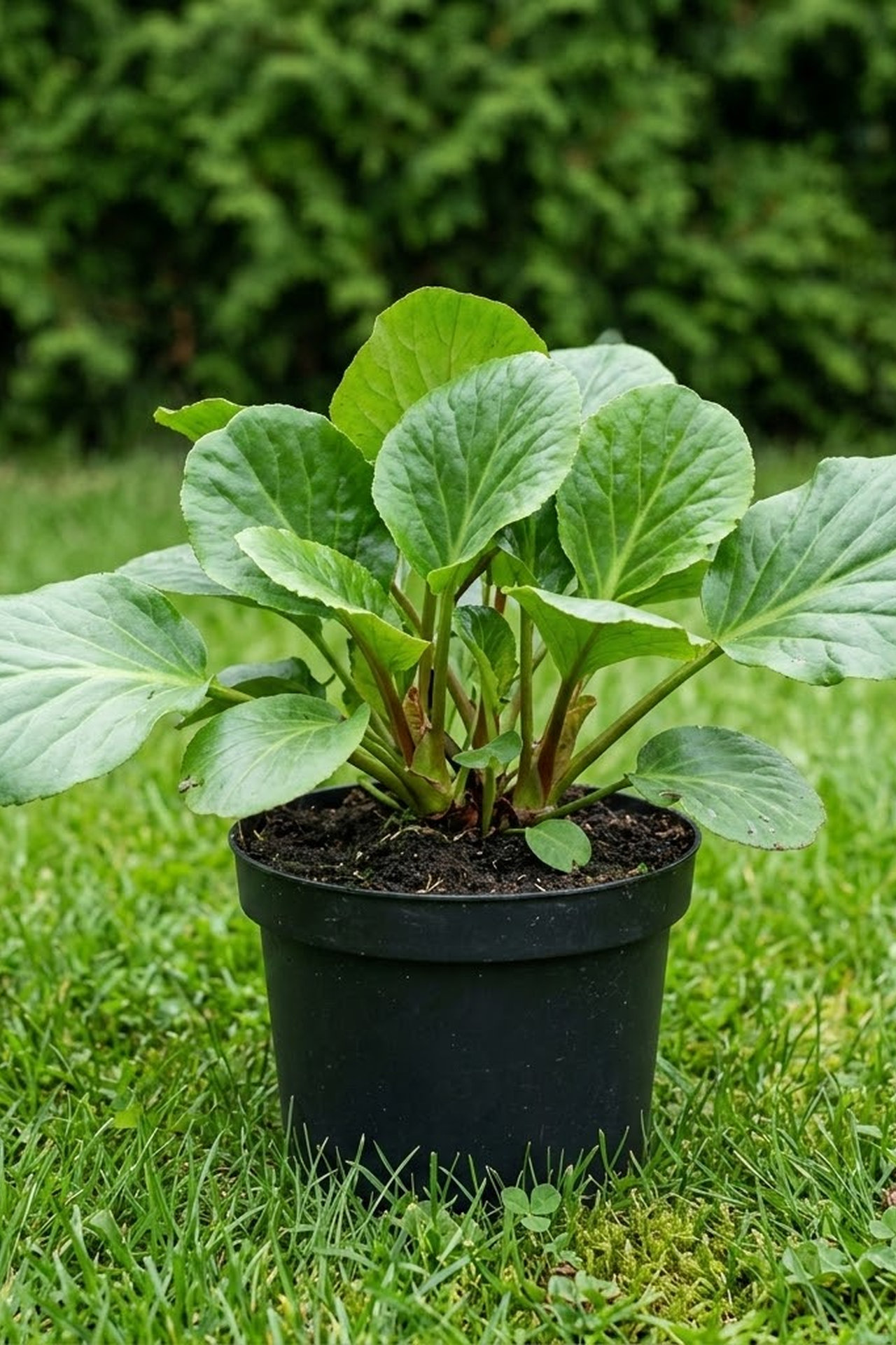 - листья круглые, сердцевидные, грубые, темно-зеленые,собраны в прикорневую розетку