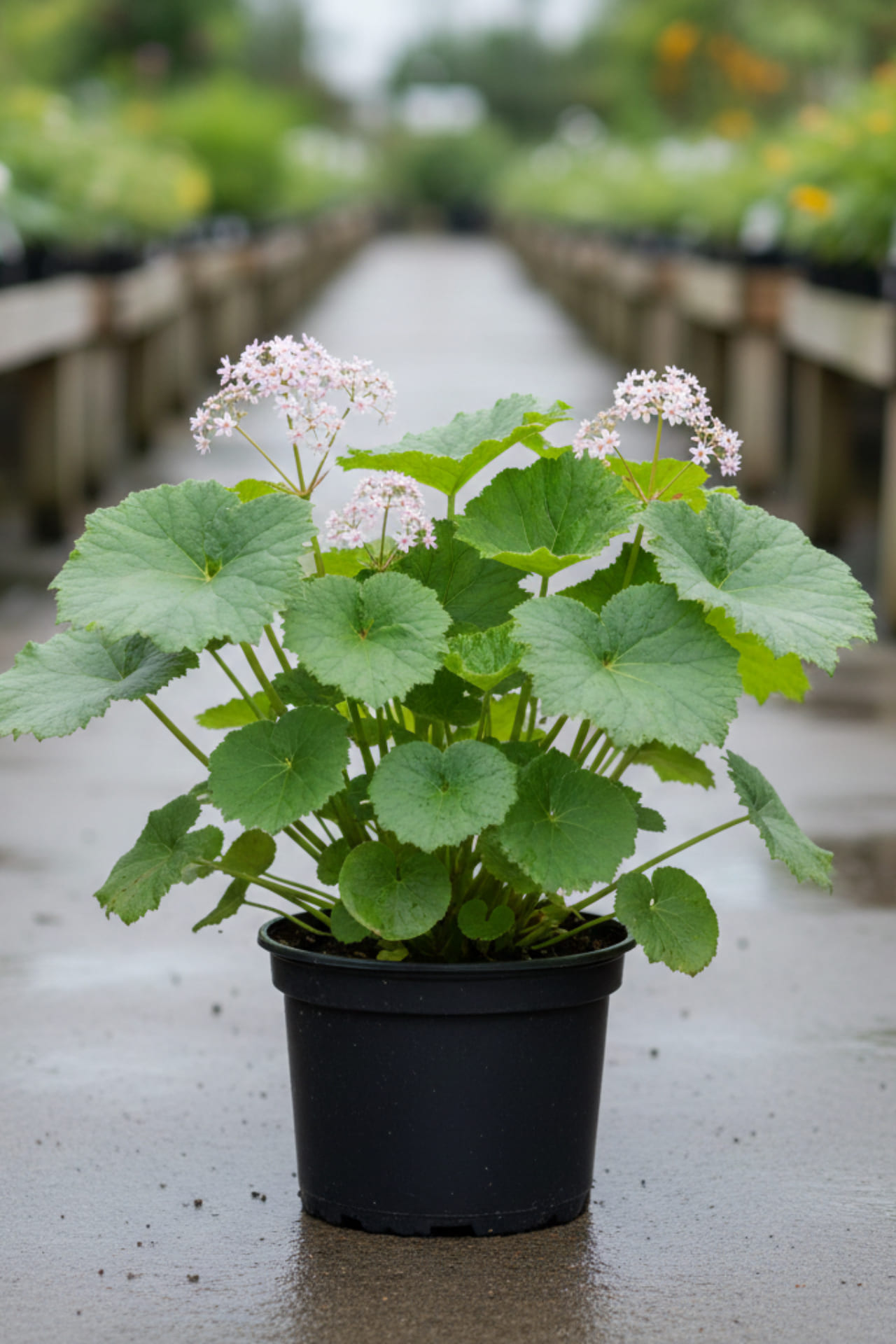 - листья прикорневые, круппные, округлые, с заметным жилкованием.