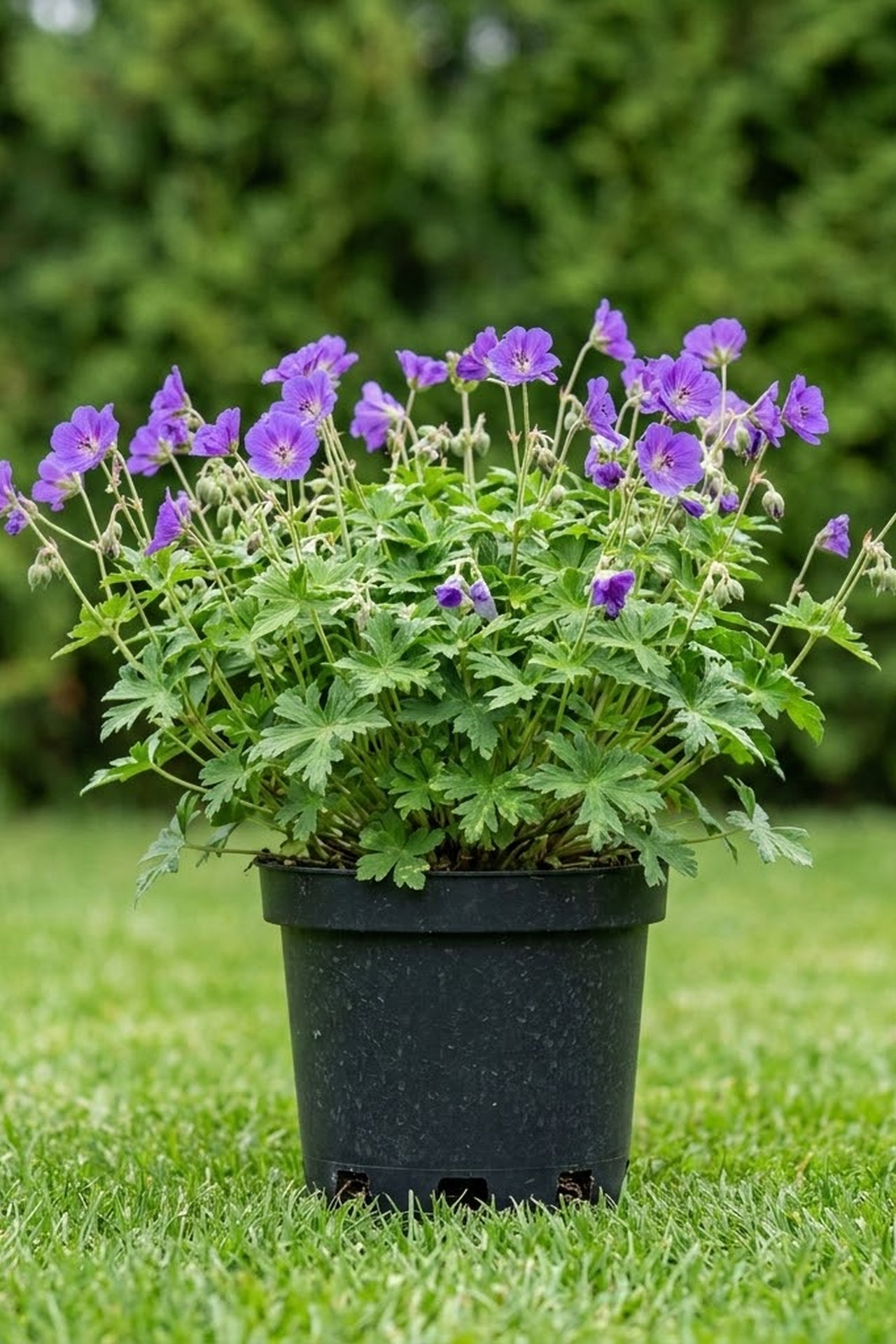 - Темно-фиолетовые смотрящие вверх цветки с светло-лиловыми прожилками