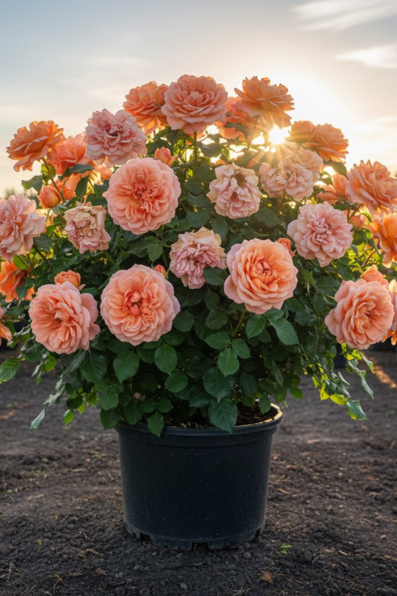 - Крупные, диаметром 12 см, густомахровые, из 70 волнистых лепестков. Цвет красивый, кремово-абрикосово-розовый; центр цветка темнее